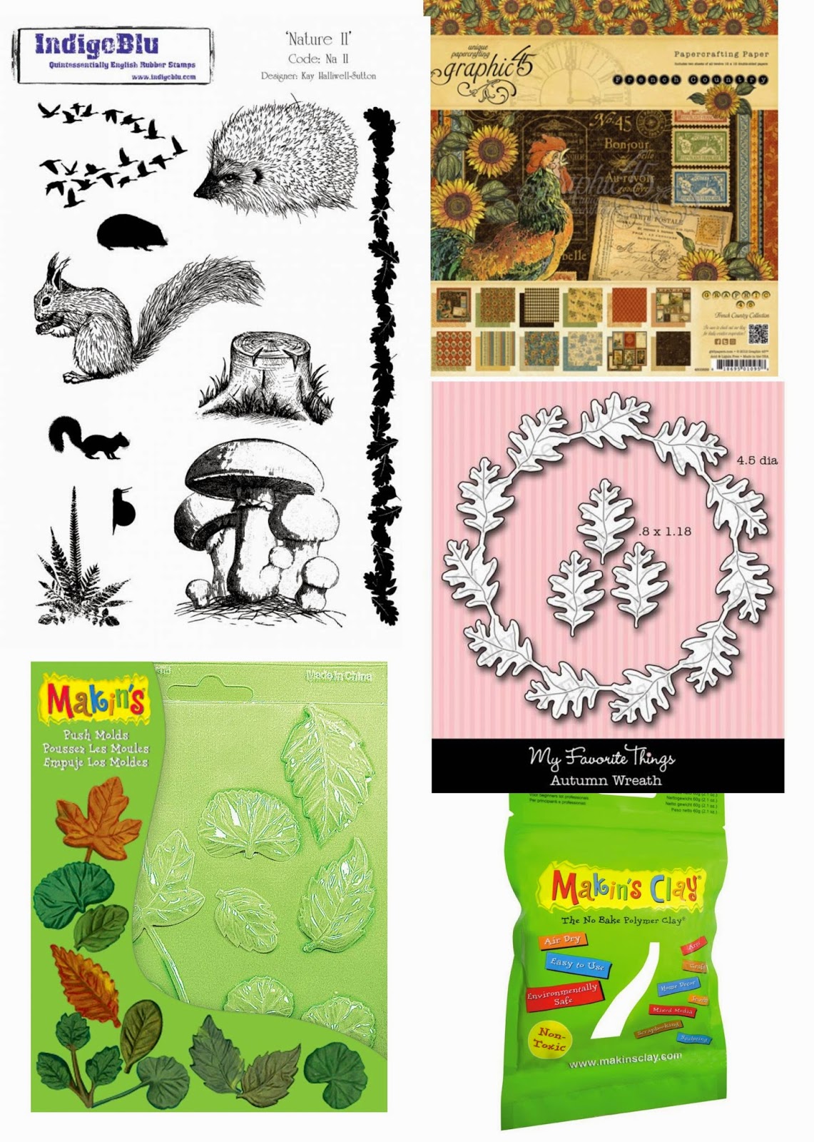 Prachtige herfstkaart met hele mooie materialen. Die klei blaadjes zijn heel erg leuk en ook de blaadjes stans is heel mooi.