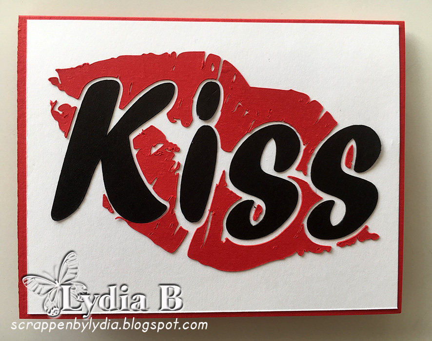 Heb eerst de tekst Kiss uit zwart cardstock uit de Aurelie Kalos collectie